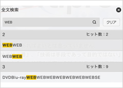 ブック全体から任意のキーワード(文字列)で検索が可能。